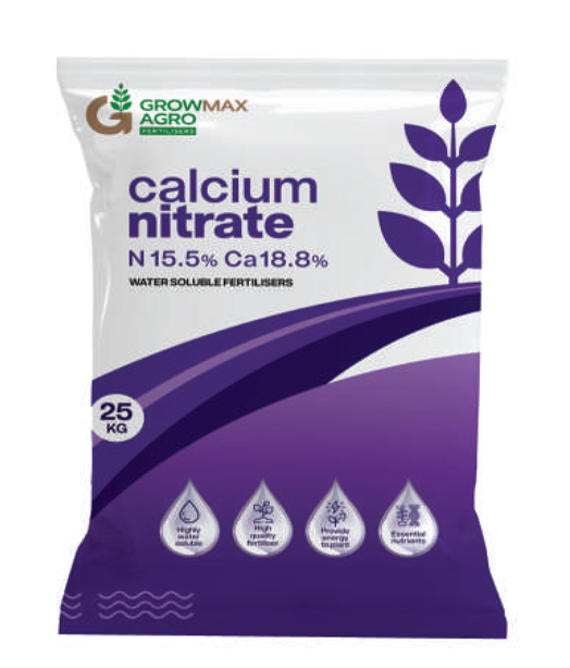 - Growmax Calcium Nitrate water soluble fertilizer is a vital component in agriculture. It plays a key role in nutrient delivery, structural support, and overall plant health, resulting in higher-quality crops and sustainable farming practices by supplying combined nutrients.
